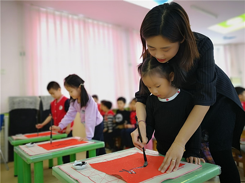 “择善而从,博学于文,约之以礼”是为修身,择书法以修身,乃千年传统。书法艺术是中华民族传统文化的瑰宝。为了丰富宝贝们的幼儿园生活,鼓励家长走进幼儿园课堂,庆幼三园于12月5日,邀请郭老师为大班幼儿开展了一堂生动实用、别开生面的软笔书法培训活动,进一步弘扬中华传统文化,推进书法走进幼儿园课堂。